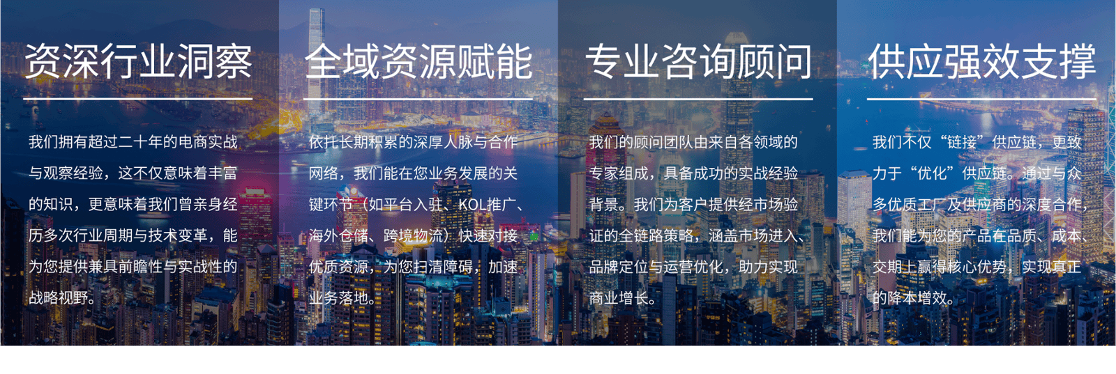 跨境电商咨询,品牌战略规划及供应链咨询,营销策划咨询等